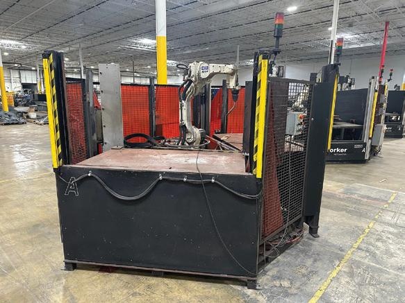 Webcast Auction of Late Model Welding Robots and Support Equipment Including (6) OTC Welding Robots, Like New Robovent Dust Collectors, Never Installed Meeco Cantilever Rack, Welders, Strappers, Racks, Carts and Related