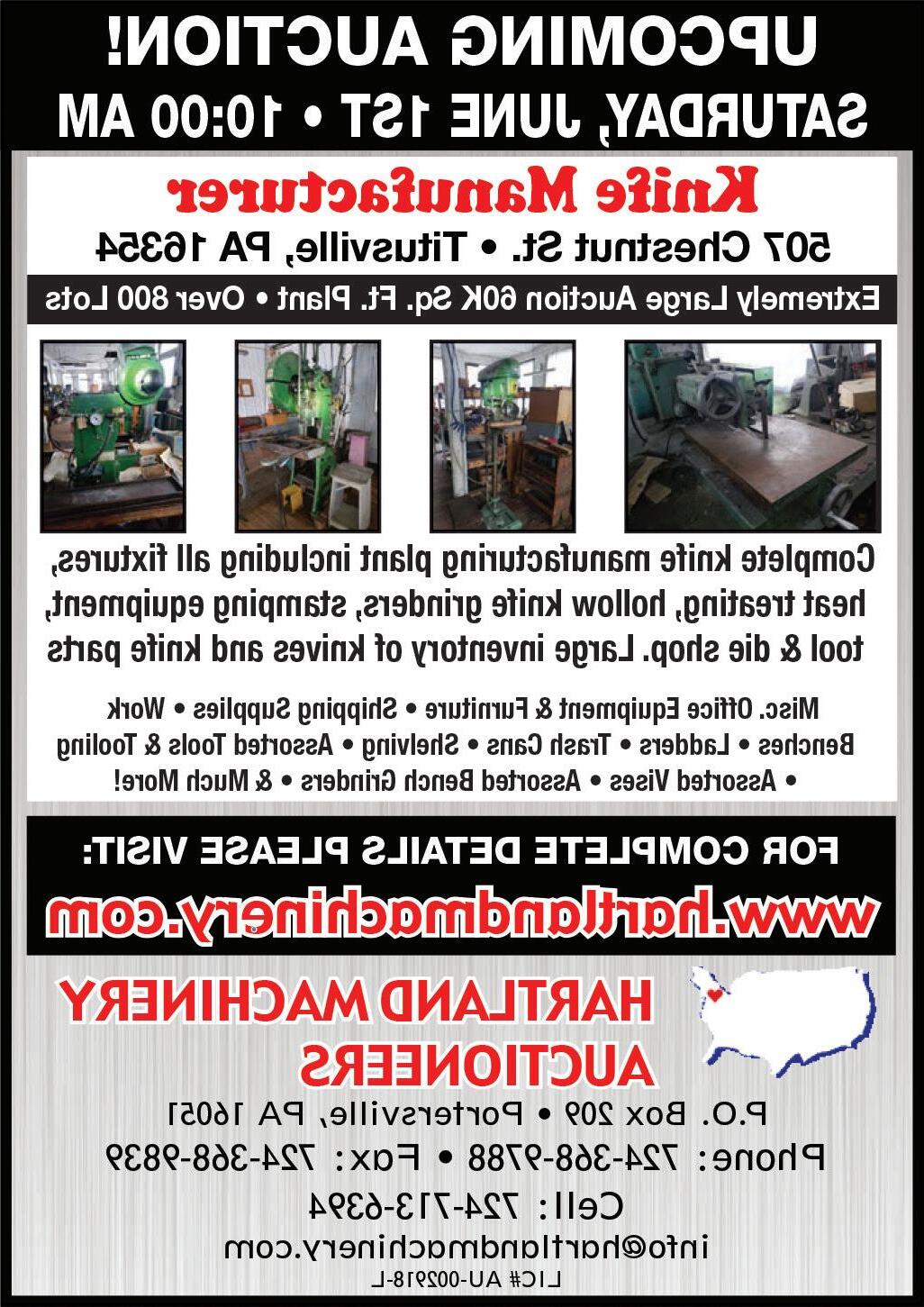 Complete Liguidation of metal fabrication shop. All pieces of equipment, the supplies, tables, compressors and office furniture. Two part auction. Saturday July 19th @ 10am is the main machine shop, live and online. All the offices and smalls are Saturday, night, July 19th, online only. Everything must go! Some Machines: Adlund Drill Press, Harris Grinder, Johnwood Compressor, Benchmark Press, RPP Machines, Clausing Drill Press, Cincinnati Mill, Bridgeport Mill, Warner Lathe, Clausing Lathe, DoAll Drill Press, Verdin Kappes Punch Press, Bliss 23 Punch Press, Wyson Belt Sander, Chicago Steat Press Brake, Verson Allsteel Press Brake, Fadal CNC, Hardinge CNC, Okuma CNC, Kalamazoo Band Saw, Toyota Forklift, Pryor Multidot 3000.