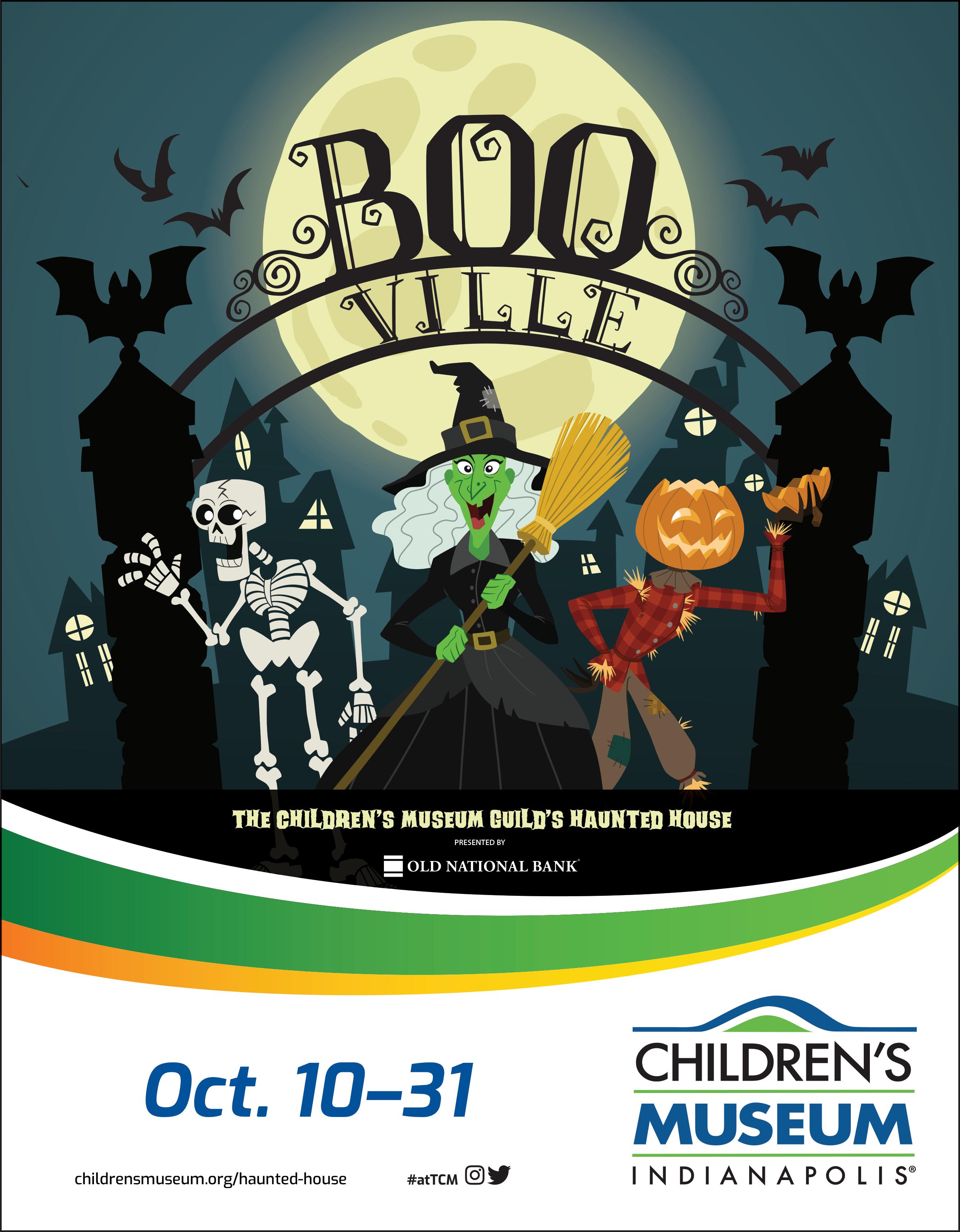 Children’s Museum Guild’s Haunted House: BOOville Oct. 10-31. A once-in-a-nightmare chance to explore the town where Halloween villains live during their “offseason.” The classic villains — mad scientists, witches, zombies, werewolves, and more — are back. And they’re just DYING to meet you. • Location: The Children’s Museum of Indianapolis, childrensmuseum.org