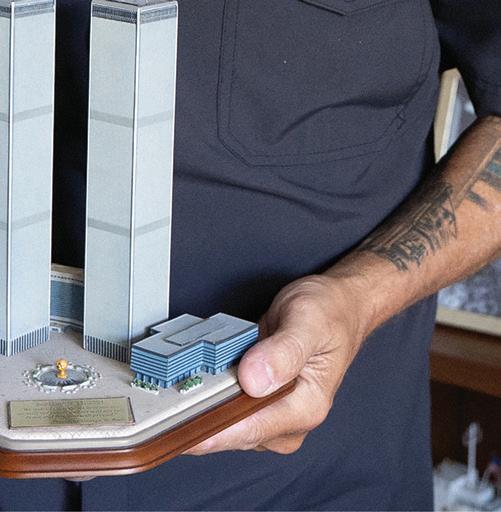 COVER Robert Young, president of the Raleigh 10-13 Association, a union composed of New York City Police Department retirees, poses for a portrait with a replica of the twin towers on Monday, June 23, 2025, in Graham. PHOTO BY ANGELICA EDWARDS