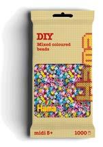 Contents: Approx. 2.400 beads, 1 medium hexagonal pegboard No. 329, 1 string, 3 hair clips, colour printed design sheet, instructions, ironing paper and 1 storage tray with lid.