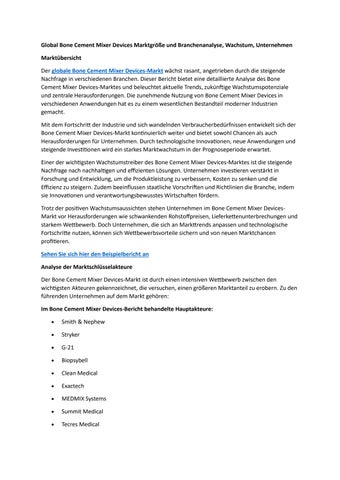 Global Bone Cement Mixer Devices Marktgröße und Branchenanalyse, Wachstum, Unternehmen