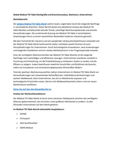 Global Medical Tilt Table Marktgröße und Branchenanalyse, Wachstum, Unternehmen