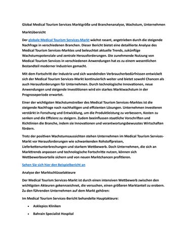 Global Medical Tourism Services Marktgröße und Branchenanalyse, Wachstum, Unternehmen