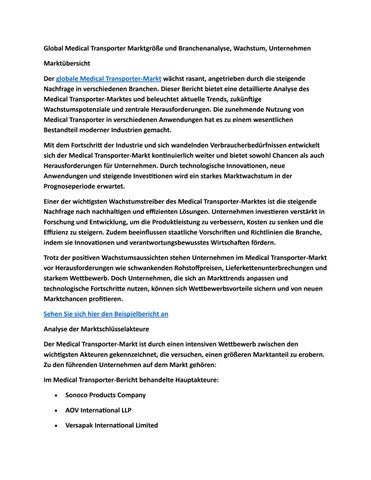 Global Medical Transporter Marktgröße und Branchenanalyse, Wachstum, Unternehmen