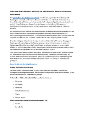 Global Bone Growth Stimulators Marktgröße und Branchenanalyse, Wachstum, Unternehmen