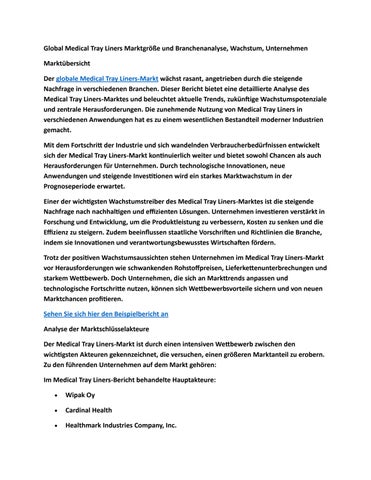 Global Medical Tray Liners Marktgröße und Branchenanalyse, Wachstum, Unternehmen