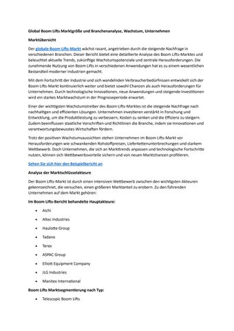 Global Boom Lifts Marktgröße und Branchenanalyse, Wachstum, Unternehmen