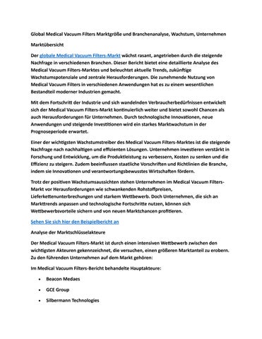 Global Medical Vacuum Filters Marktgröße und Branchenanalyse, Wachstum, Unternehmen