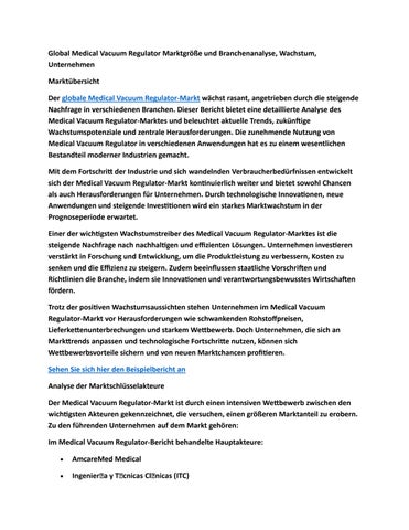 Global Medical Vacuum Regulator Marktgröße und Branchenanalyse, Wachstum, Unternehmen