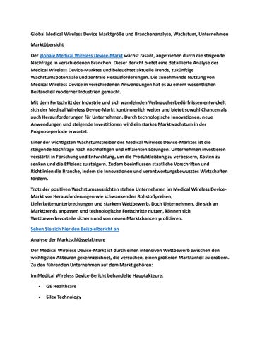 Global Medical Wireless Device Marktgröße und Branchenanalyse, Wachstum, Unternehmen
