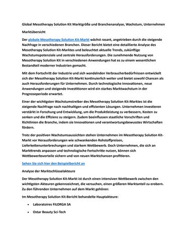 Global Mesotherapy Solution Kit Marktgröße und Branchenanalyse, Wachstum, Unternehmen