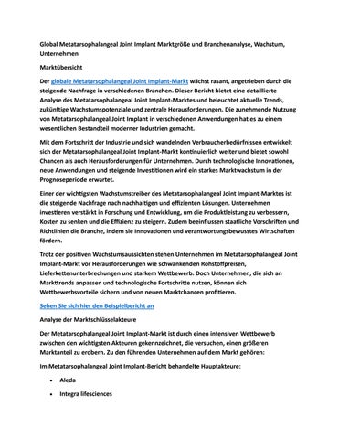 Global Metatarsophalangeal Joint Implant Marktgröße und Branchenanalyse, Wachstum, Unternehmen