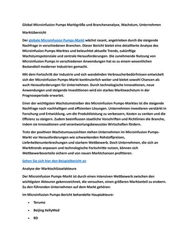 Global Microinfusion Pumps Marktgröße und Branchenanalyse, Wachstum, Unternehmen