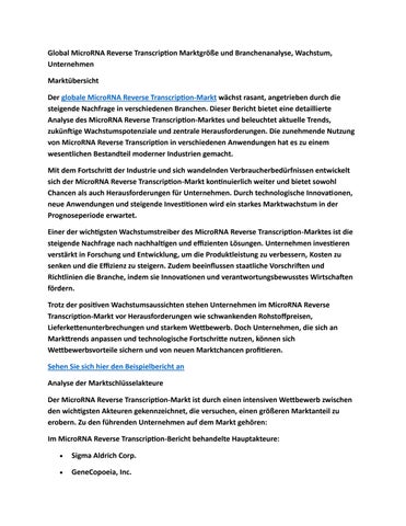 Global MicroRNA Reverse Transcription Marktgröße und Branchenanalyse, Wachstum, Unternehmen