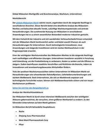 Global Midazolam Marktgröße und Branchenanalyse, Wachstum, Unternehmen
