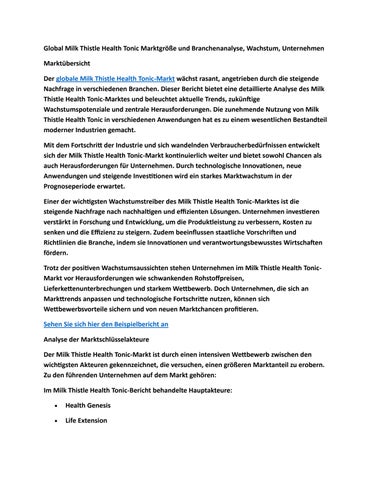 Global Milk Thistle Health Tonic Marktgröße und Branchenanalyse, Wachstum, Unternehmen