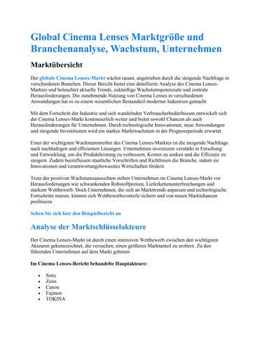 Global Cinema Lenses Marktgröße und Branchenanalyse