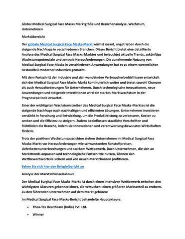 Global Medical Surgical Face Masks Marktgröße und Branchenanalyse, Wachstum, Unternehmen