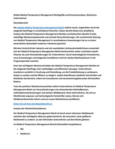 Global Medical Temperature Management Marktgröße und Branchenanalyse, Wachstum, Unternehmen