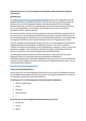 Global Bio-Sensors for non-clinical Applications Marktgröße und Branchenanalyse, Wachstum, Unternehm