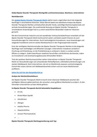 Global Bipolar Disorder Therapeutic Marktgröße und Branchenanalyse, Wachstum, Unternehmen