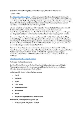 Global Bismaleimide Marktgröße und Branchenanalyse, Wachstum, Unternehmen
