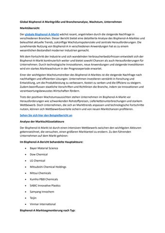 Global Bisphenol-A Marktgröße und Branchenanalyse, Wachstum, Unternehmen