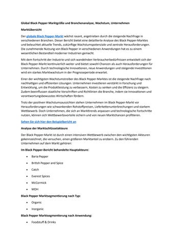 Global Black Pepper Marktgröße und Branchenanalyse, Wachstum, Unternehmen