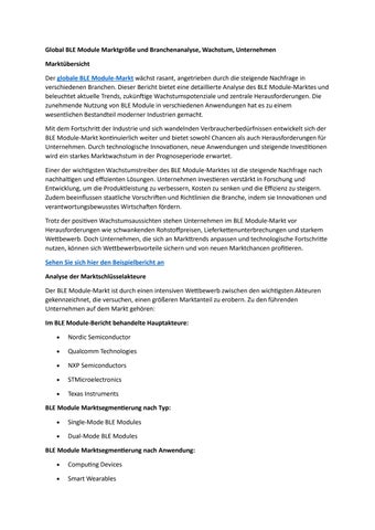 Global BLE Module Marktgröße und Branchenanalyse, Wachstum, Unternehmen
