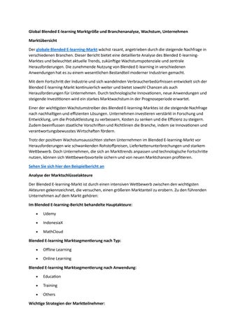 Global Blended E-learning Marktgröße und Branchenanalyse, Wachstum, Unternehmen