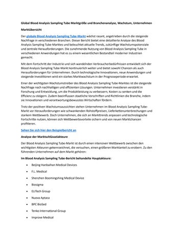 Global Blood Analysis Sampling Tube Marktgröße und Branchenanalyse, Wachstum, Unternehmen