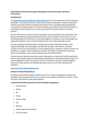 Global Blood and Fluid Warming System Marktgröße und Branchenanalyse, Wachstum, Unternehmen