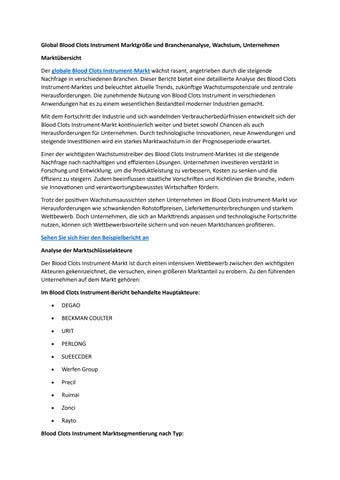 Global Blood Clots Instrument Marktgröße und Branchenanalyse, Wachstum, Unternehmen