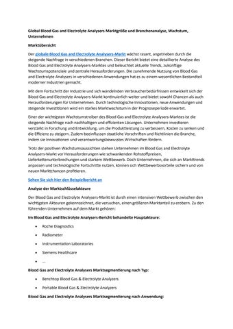 Global Blood Gas and Electrolyte Analysers Marktgröße und Branchenanalyse, Wachstum, Unternehmen