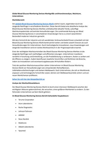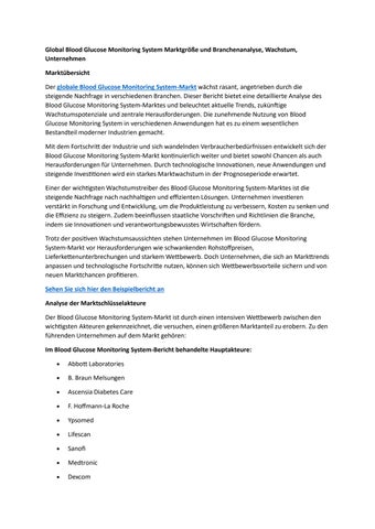 Global Blood Glucose Monitoring Devices Marktgröße und Branchenanalyse, Wachstum, Unternehmen