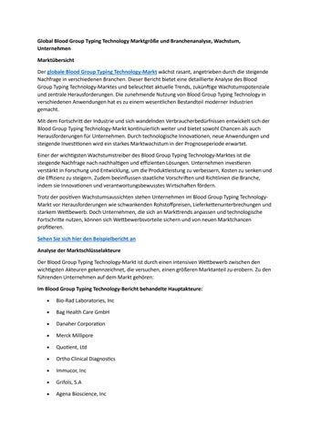 Global Blood Group Typing Technology Marktgröße und Branchenanalyse, Wachstum, Unternehmen