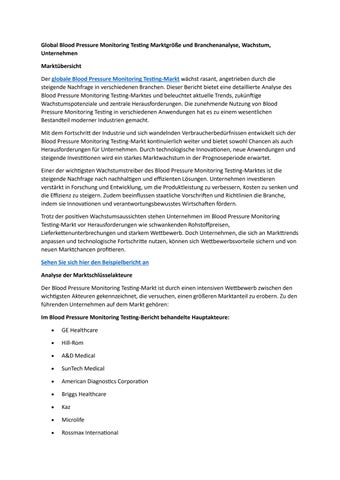 Global Blood Pressure Monitoring Testing Marktgröße und Branchenanalyse