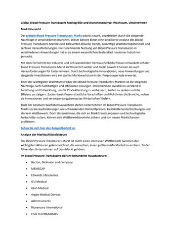 Global Blood Pressure Transducers Marktgröße und Branchenanalyse, Wachstum, Unternehmen