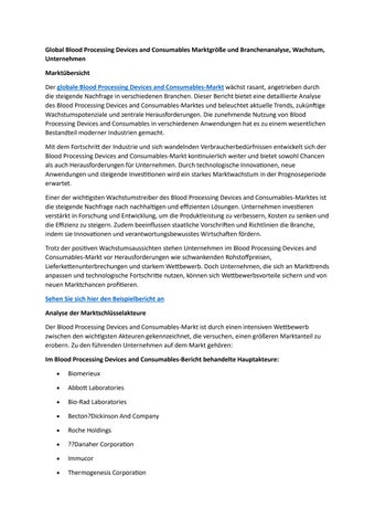 Global Blood Processing Devices and Consumables Marktgröße und Branchenanalyse, Wachstum, Unternehme