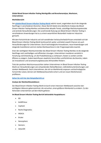 Global Blood Stream Infection Testing Marktgröße und Branchenanalyse, Wachstum, Unternehmen