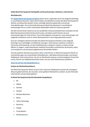 Global Blood Test Equipment Marktgröße und Branchenanalyse, Wachstum, Unternehmen