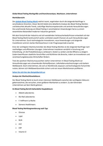 Global Blood Testing Marktgröße und Branchenanalyse, Wachstum, Unternehmen