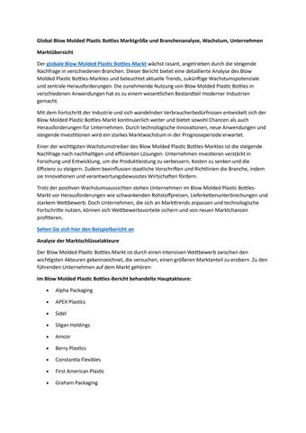 Global Blow Molded Plastic Bottles Marktgröße und Branchenanalyse, Wachstum, Unternehmen