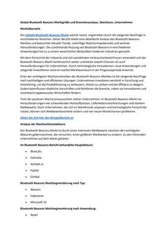 Global Bluetooth Beacons Marktgröße und Branchenanalyse, Wachstum, Unternehmen