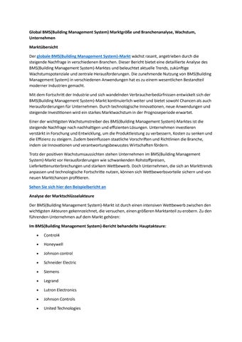 Global BMS(Building Management System) Marktgröße und Branchenanalyse, Wachstum, Unternehmen