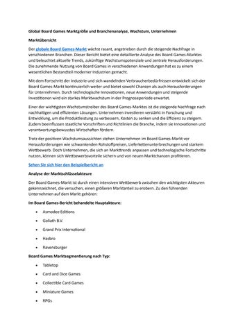 Global Board Games Marktgröße und Branchenanalyse, Wachstum, Unternehmen
