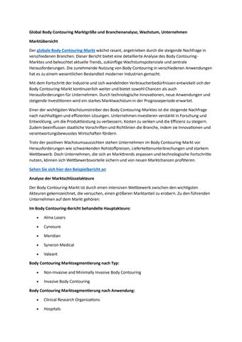 Global Body Contouring Marktgröße und Branchenanalyse, Wachstum, Unternehmen