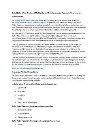 Global Boiler Water Treatment Marktgröße und Branchenanalyse, Wachstum, Unternehmen