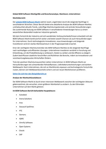 Global BOM Software Marktgröße und Branchenanalyse, Wachstum, Unternehmen